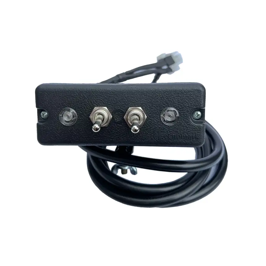 Painel possui duas chaves e duas lâmpadas indicadoras, uma para cada lado da barra.